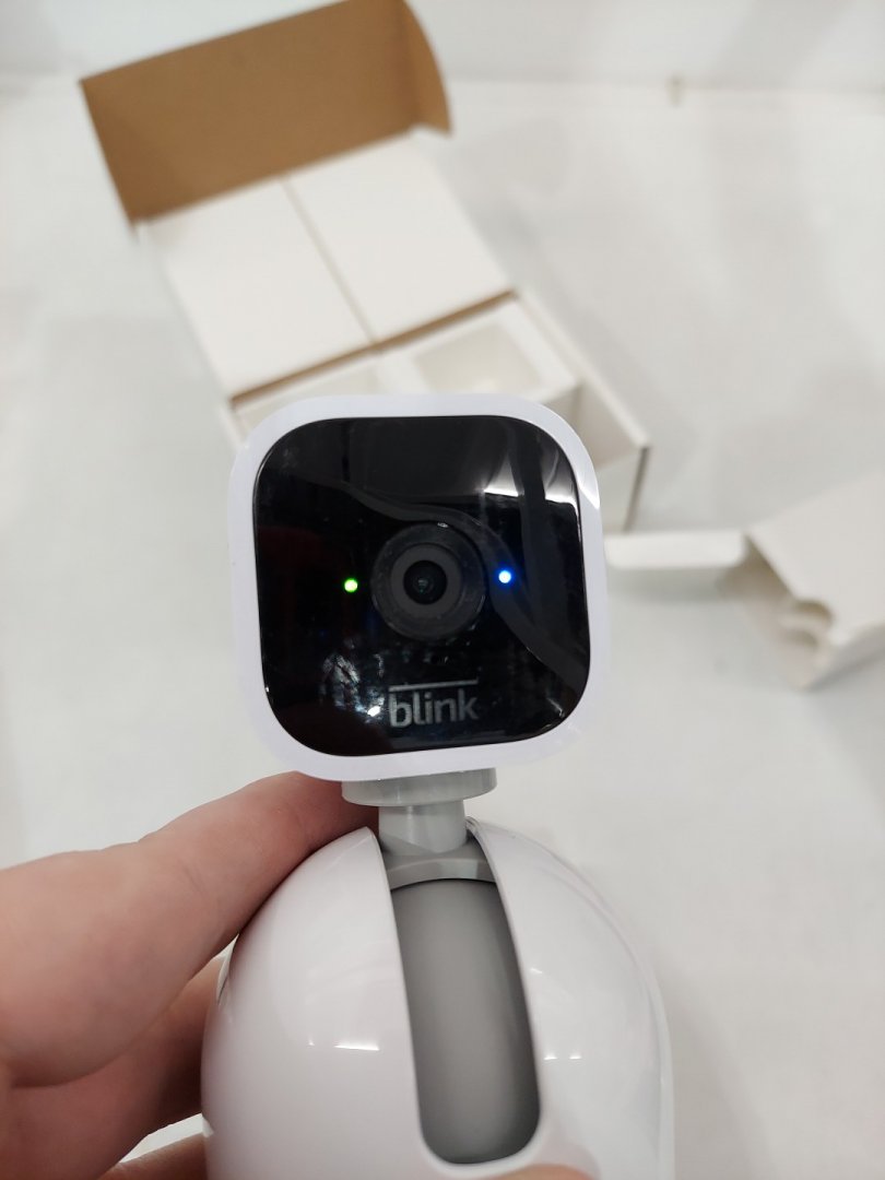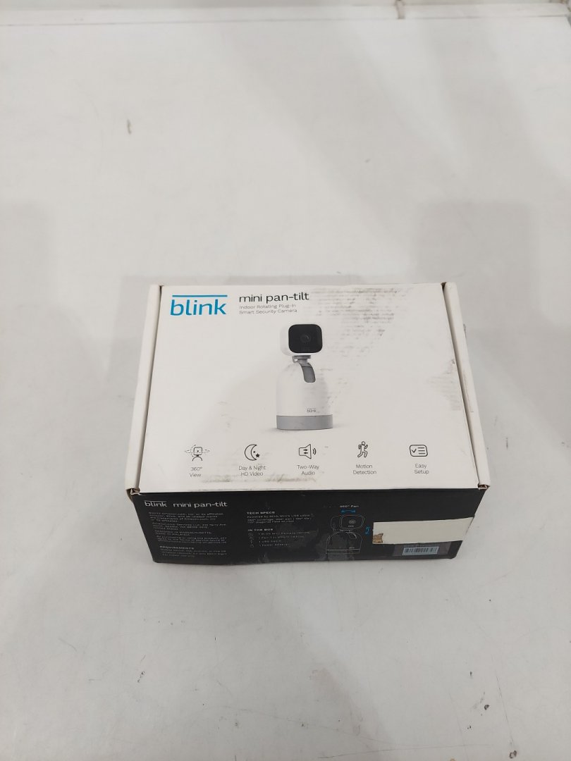blink Mini Pan-Tilt Camera - rotating indoor plug in security camera - with 2-way audio - white (model: bae041000u)