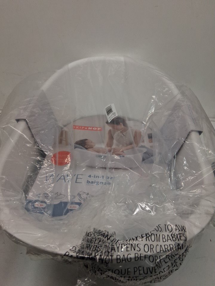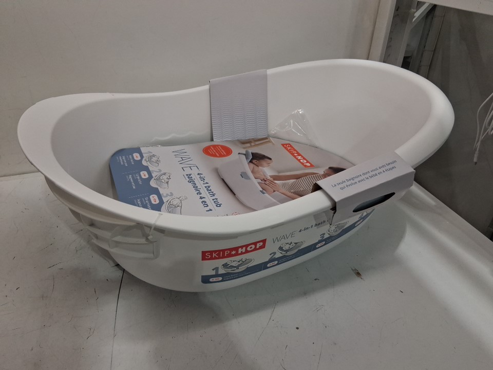 skip hop Wave 4-in-1 Baby Bath Tub - newborn to 2 years - 15lb to 25lb - white/blue (MODEL: 9L511910)