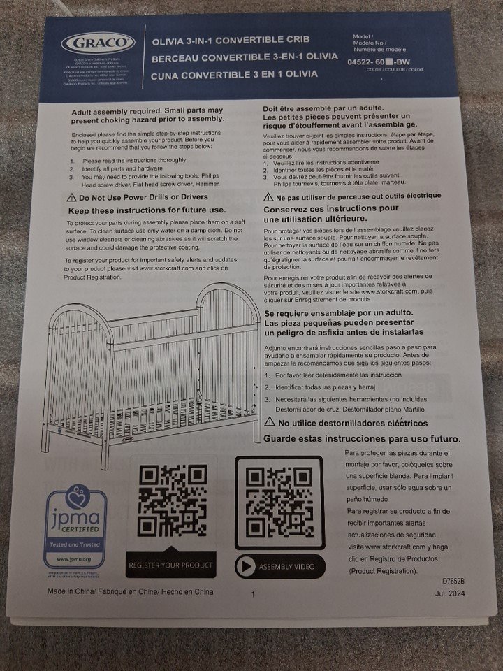 Graco Olivia 3-In-1 Convertible Crib - Hazelnut (model: 04522-608-BW)