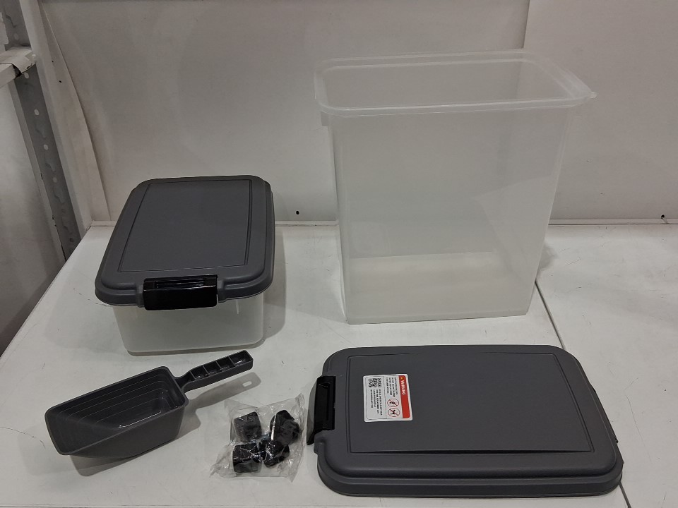 3PC IRIS AIRTIGHT PET FOOD STORAGE CONTAINER WITH SCOOP - 33QT & 12QT - CHROME (MODEL: MP-8)
