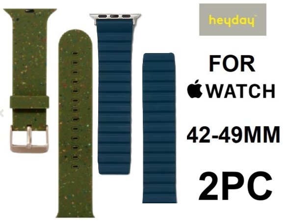 2PC heyday Apple Watch Silicone Band - 41-49 mm - olive speckle/ BLUE