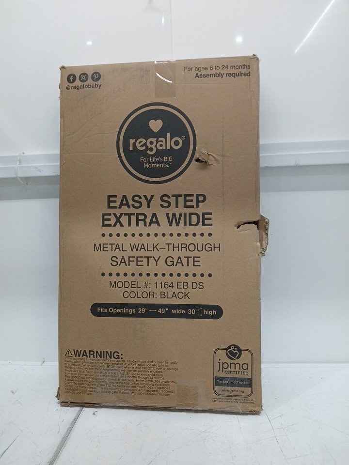 REGALO EASY STEP EXTRA WIDE METAL SAFETY GATE - 30" x 29" - 49" - BLACK (MODEL: 1164EBDS)