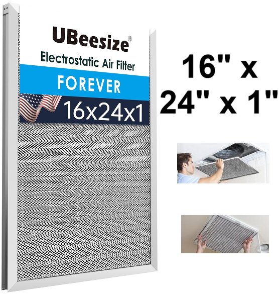 UBeesize Reusable Electrostatic Air Filter for HVAC AC Furnace - 16" x 24" x 1" - silver (MODEL: ‎UB-LKW16241)