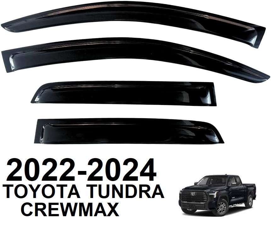 4PC KPY TAPE ON WINDOW VENT VISORS FOR 2022 TO 2024 TOYOTA TUNDRA CREWMAX - BLACK (MODEL: 814151)