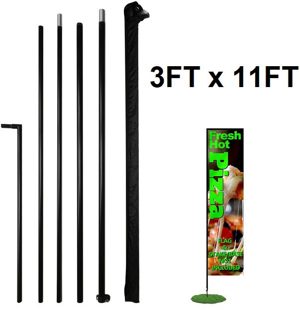 Anley Rectangle Feather Flagpole Set - 3FT x 11FT - black
