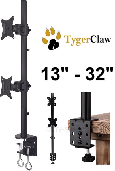 TygerClaw Adjustable Double VESA Monitor Mount for 13" - 32" screens - black