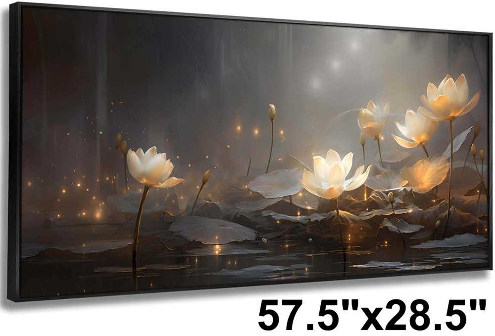 large canvas wall decor artwork - 57.5"x28.5" - gold flowers