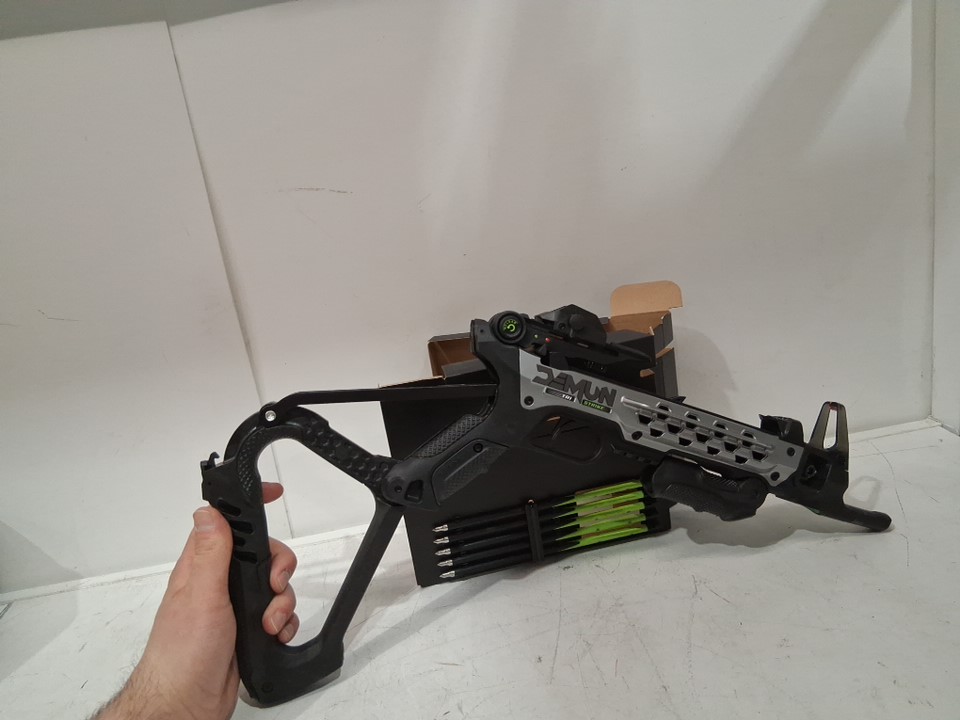Barnett Demun Tri-Strike Ambidextrous Mini Crossbow 3-Shot Magazine & Precision Sights - 180FPS - 50LB draw - BLACK/GREEN (MODEL:‎ BAR50013)