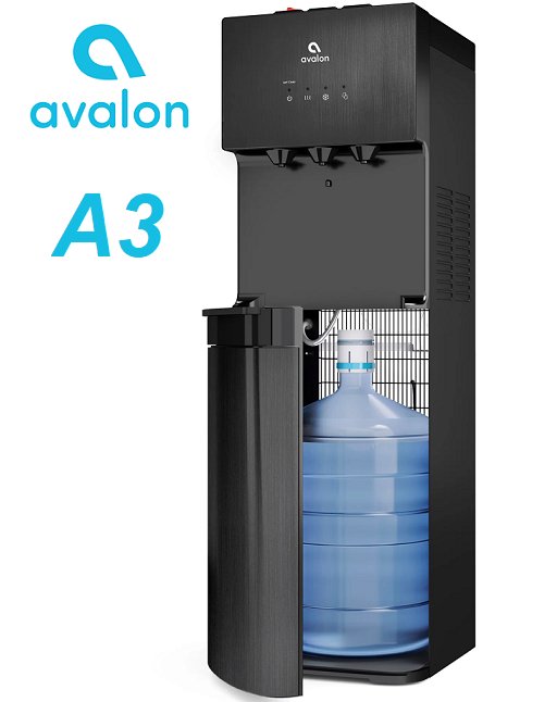 Avalon Self Cleaning Water Cooler Water Dispenser WITH 3 Temperature AND Bottom Loading - 3-5GAL - Black/Stainless Steel (MODEL: A3BLK)