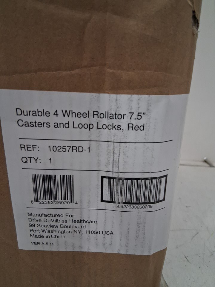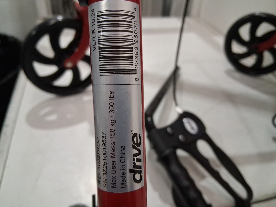 DRIVE DURABLE 4-WHEEL ROLLATOR - 7.5" CASTERS AND LOOP LOCKS - RED (MODEL: 10257RD-1)