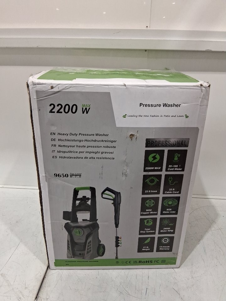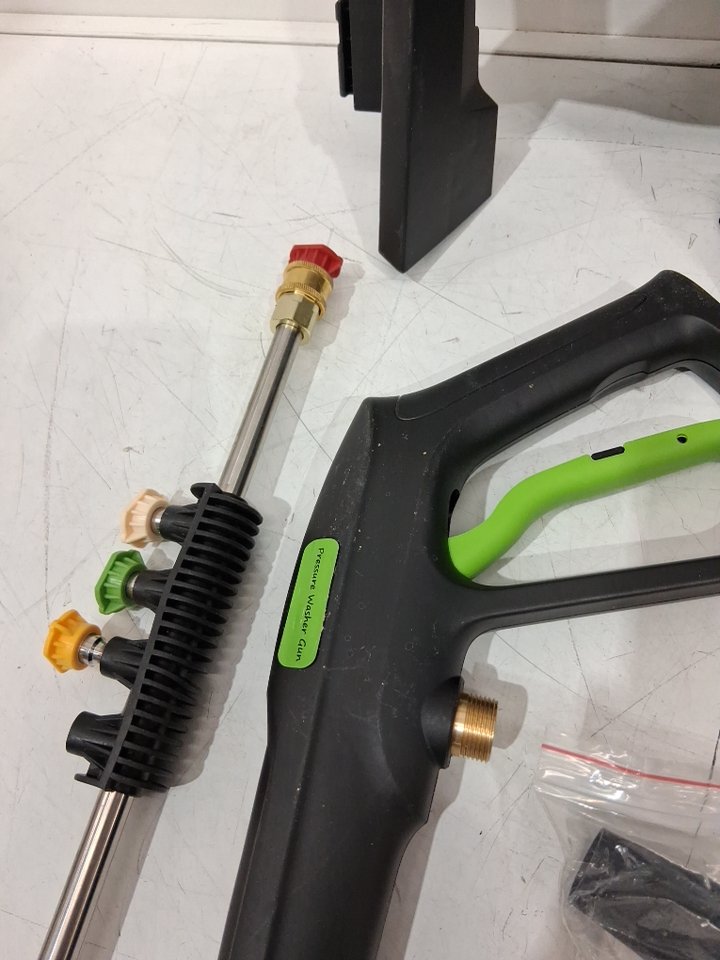 Please note that it appears that one of the hoses is missing, is replaceable: https://www.homedepot.ca/product/be-power-equipment-pressure-washer-high-pressure-50-ft-x-3-8-inch-4-000-psi-wire-braided-hose-with-quick-connects/1000697239 There is also some light wear on the washer (see photos) due to previous light use. Tested for basic power.