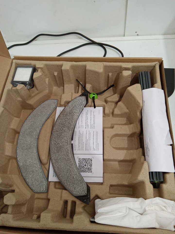Item tested for power, charging, basic functionality via the buttons on the robot vacuum. We are unable to fully test out the item due to it's nature and the limitations of our network. There is slight wear on the side brush, main brush and mop pad as a result from previous use. There is scuffs/scratches on both the robot vacuum and base station from previous use/shipping. The water tanks inside the base station are dirty and we recommend customer thoroughly clean them along with the rest of the base station and robot vacuum prior to using it. See attached photos for everything included with the item.