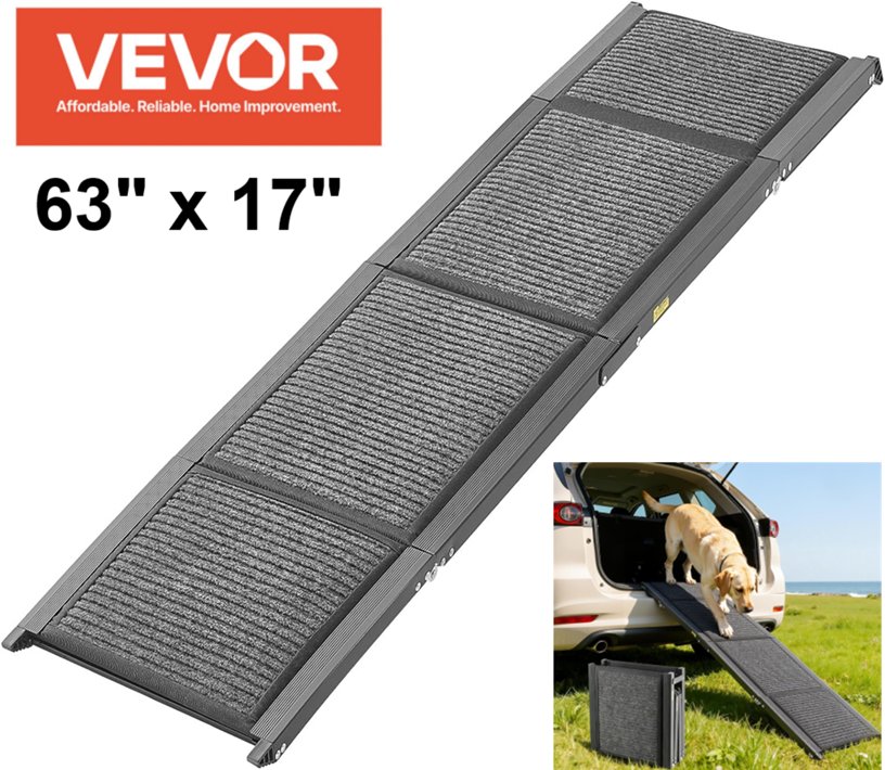 Metal Outdoor Felt Rug Surface Dog Ramp For Vehicles - 63" x 17" - Black (Model: 160*44)