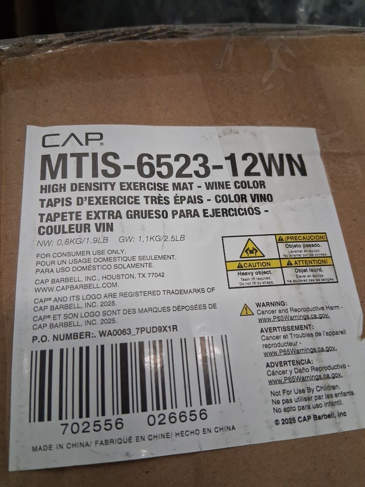 CAP Barbell High Density Exercise Yoga Mat with Strap - 68" x 24" x 0.5" - Wine (model: ‎MTIS-6523-12WN)