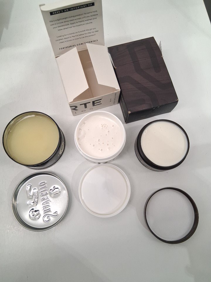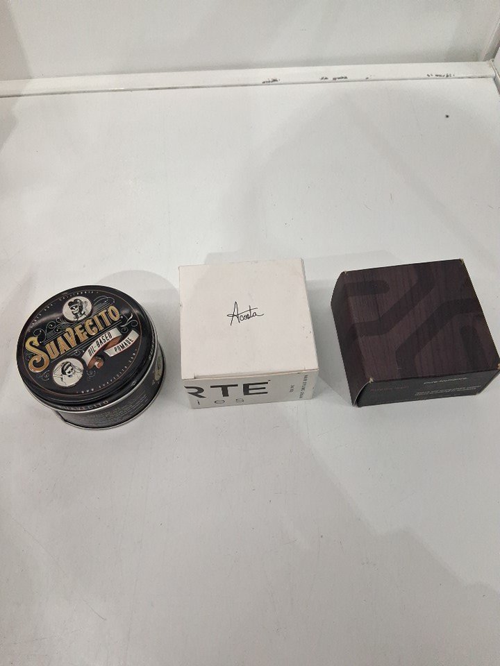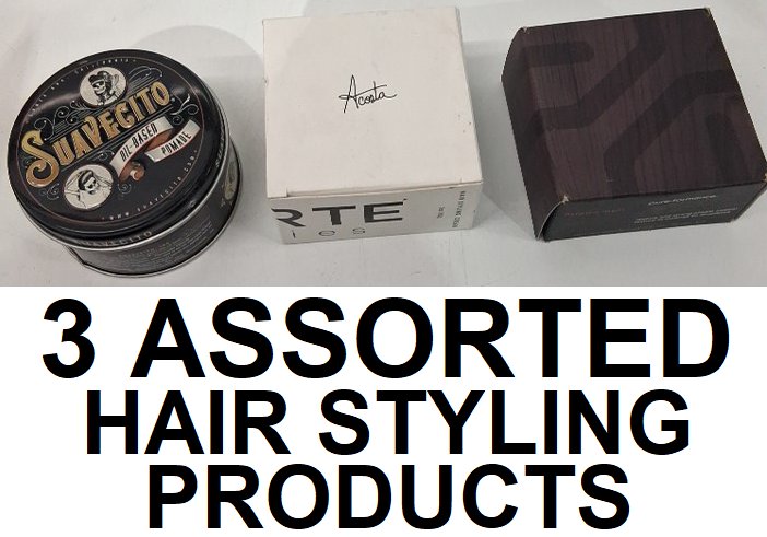 3 assorted hair styling products - assorted brands, sizes and types - pomade / hair cream / grooming clay