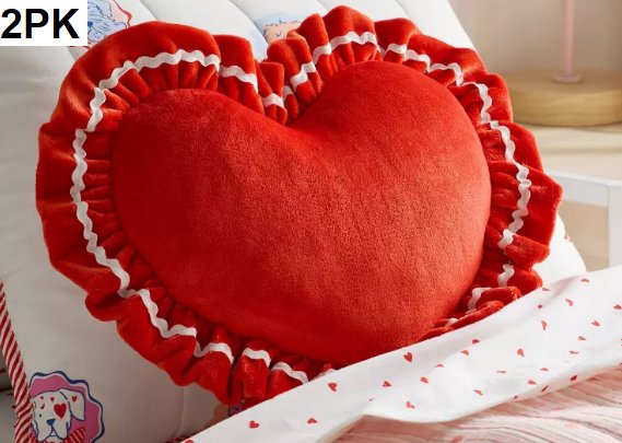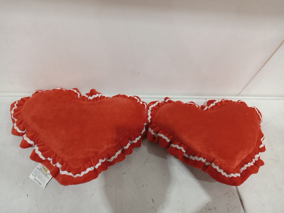 2PK Pillowfort Velvet Ruffle Heart Kids Novelty Plush Pillow - 17" x 14.5" - red (model: 097-02-6033)