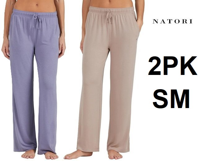 2PK Women's Natori soft touch lounge pants - SMALL - BLUE / BEIGE (Style: 1841400)