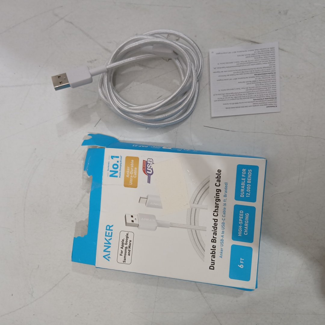 Anker Durable Braided USB-A to USB-C Fast Charging Cable - 6ft - White (Model: A81H6H21-1)