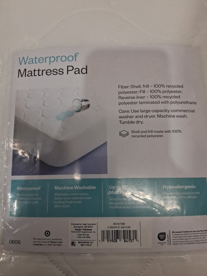 ROOM ESSENTIALS WATERPROOF QUILTED MATTRESS PAD - KING - (Model: 0606)