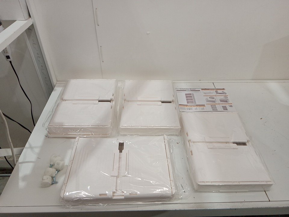 SNSLXH 4 Tier Plastic Storage tower with wheels - 23QT - 31" x 10.62" x 14.56" - white/brown
