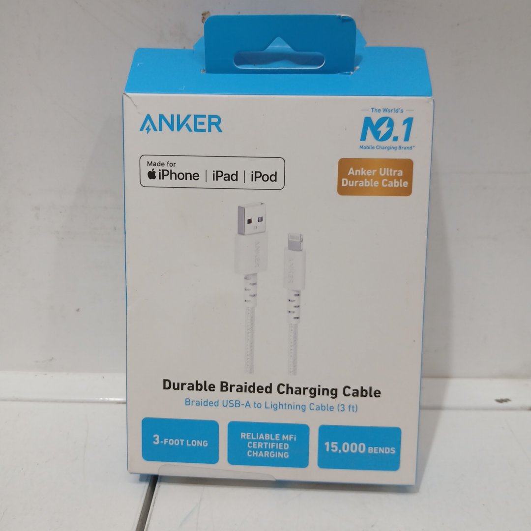 Anker durable Braided Charging Cable - USB-A to lightning - 3ft - White (Model: A8012H21-1)