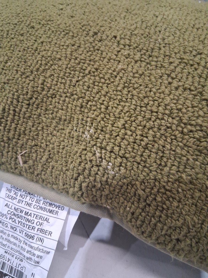 One pillow seems to have paint or debris on it.