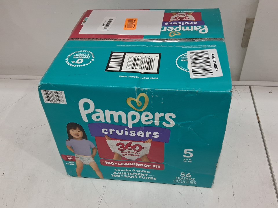 56PK PAMPERS CRUISERS 360° FIT DISPOSABLE TAPE-FREE DIAPERS - SIZE 5 (27+LBS)