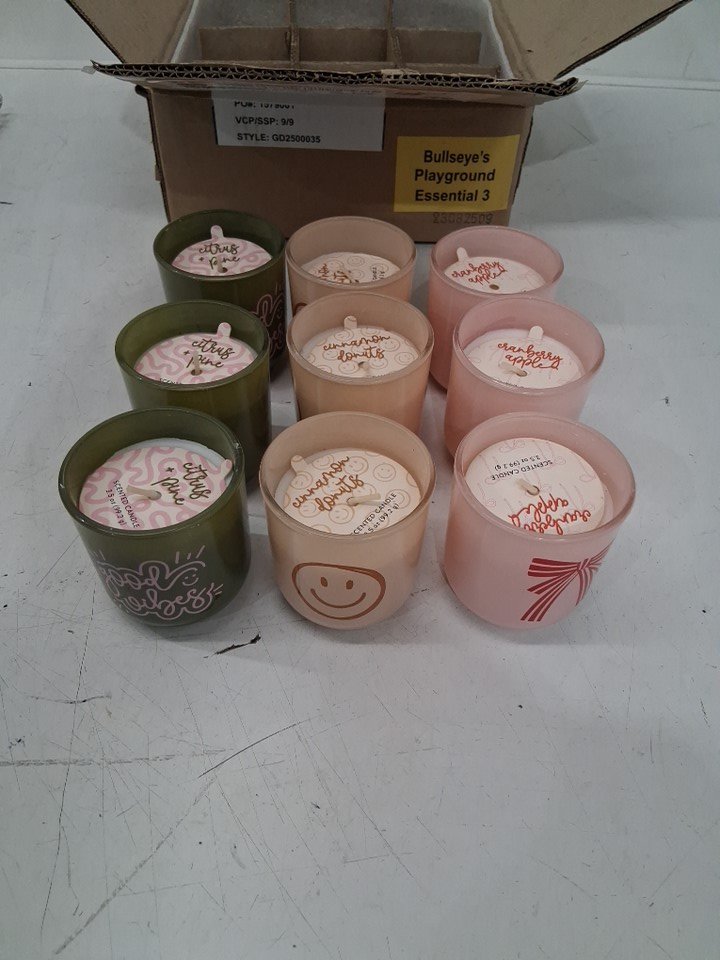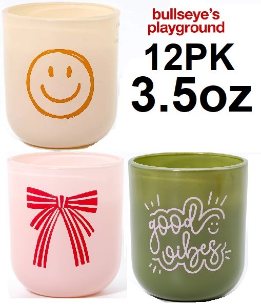 12pk bullseye's playground ceramic candles - 3.5oz - cinnamon donuts/cranberry apple/ citrus pine