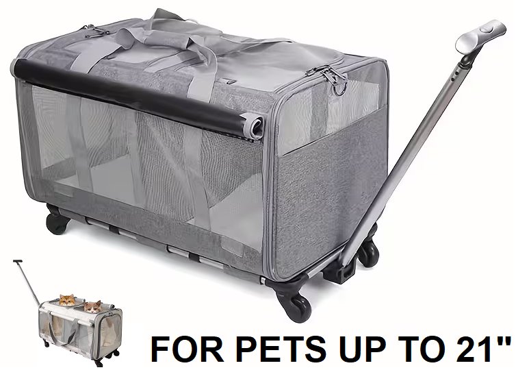 Double Compartment small pet Detachable Travel Carrier - for pets up to 21" - grey