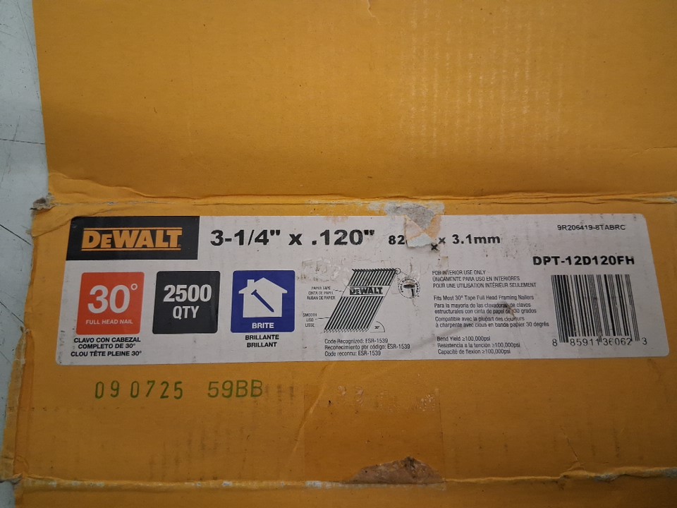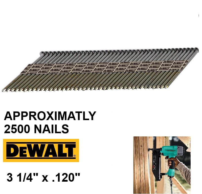 ~2500pk Off-Set Round Head DEWALT Framing Nails - 3 1/4" x .120" - silver - (model: DPT-12D120FH)
