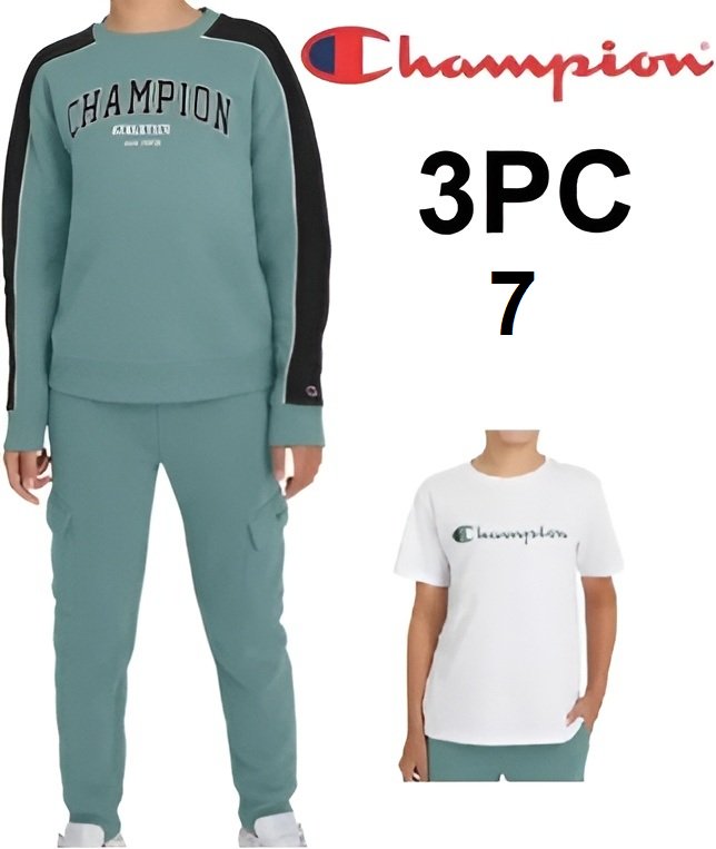 3PC KID'S Champion tee, sweatshirt, pants - 7 - GREEN/WHITE (STYLE: 1114545)