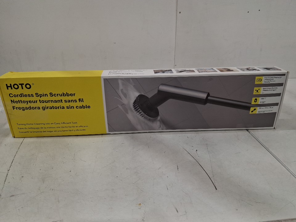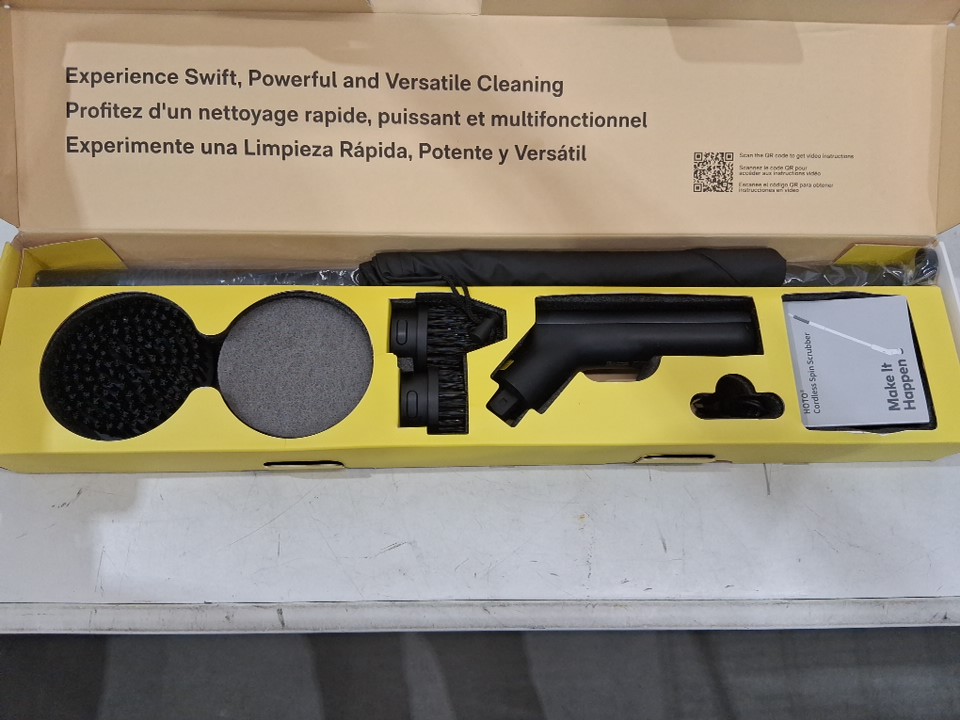 hoto cordless electric spin scrubber brush with 6 Brush Heads - 35"-47" handle - black (model: QWQJS001)