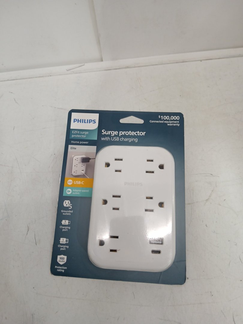 Philips EZFit 5 OUTLET SURGE PROTECTOR POWER OUTLET WITH USB/USB-C CHARGING (MODEL: SPP3513W/37)