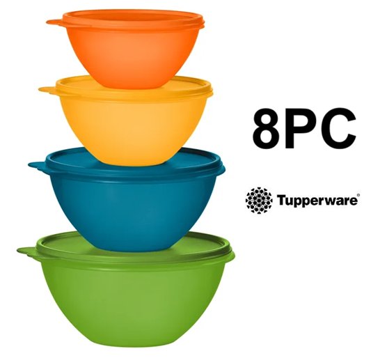 8pc tupperware Wonderlier Collection Food Storage Containers-blue/green/yellow/orange-(model:1995488)