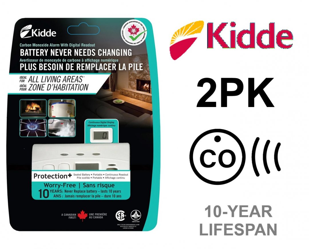 2PK Kidde 10-year Battery Operated Carbon Monoxide Alarm - White (Model: C3010-D-CA)
