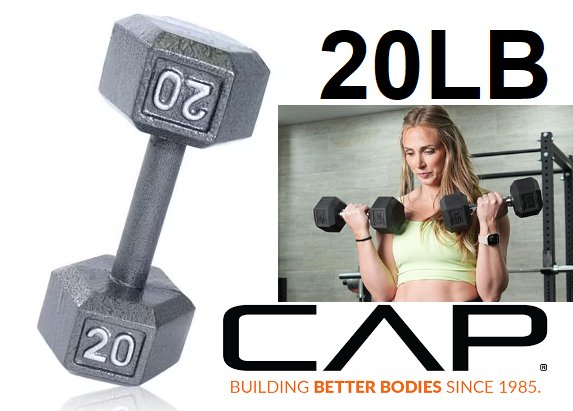 cap Barbell Cast Iron Hex Dumbbell - 20lb - grey (model: sdg-020)