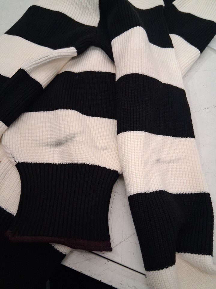 both sleeves have black streak stains from shipping