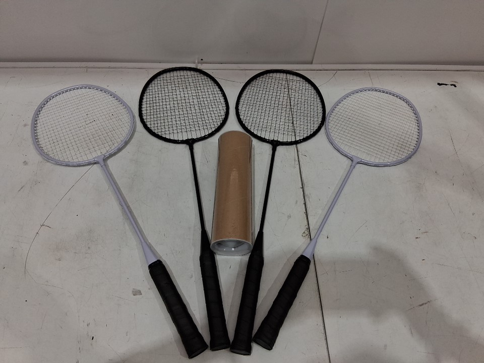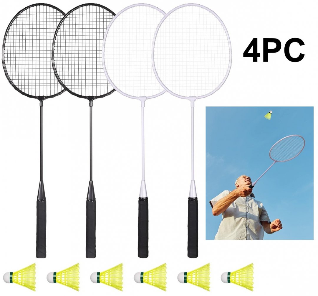 4PK abovegenius lightweight badminton rackets with nylon shuttlecocks - black/white (model: AG-4BR)