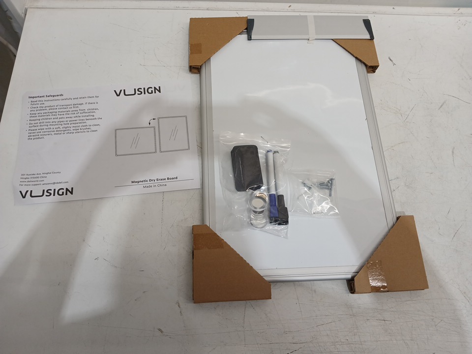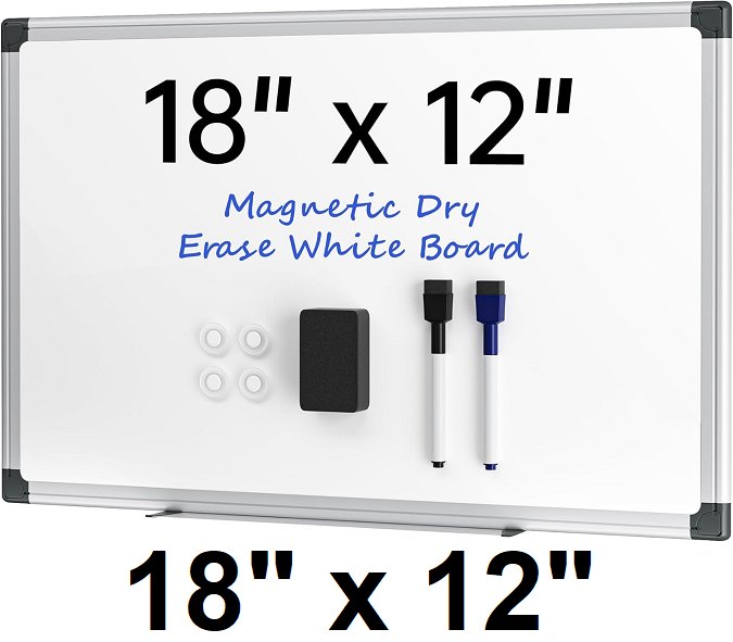 vusign magnetic dry erase whiteboard with silver frame - 18" x 12" - white