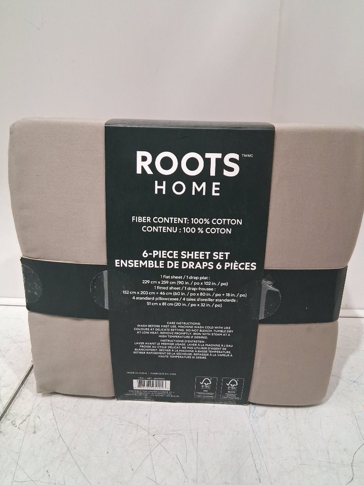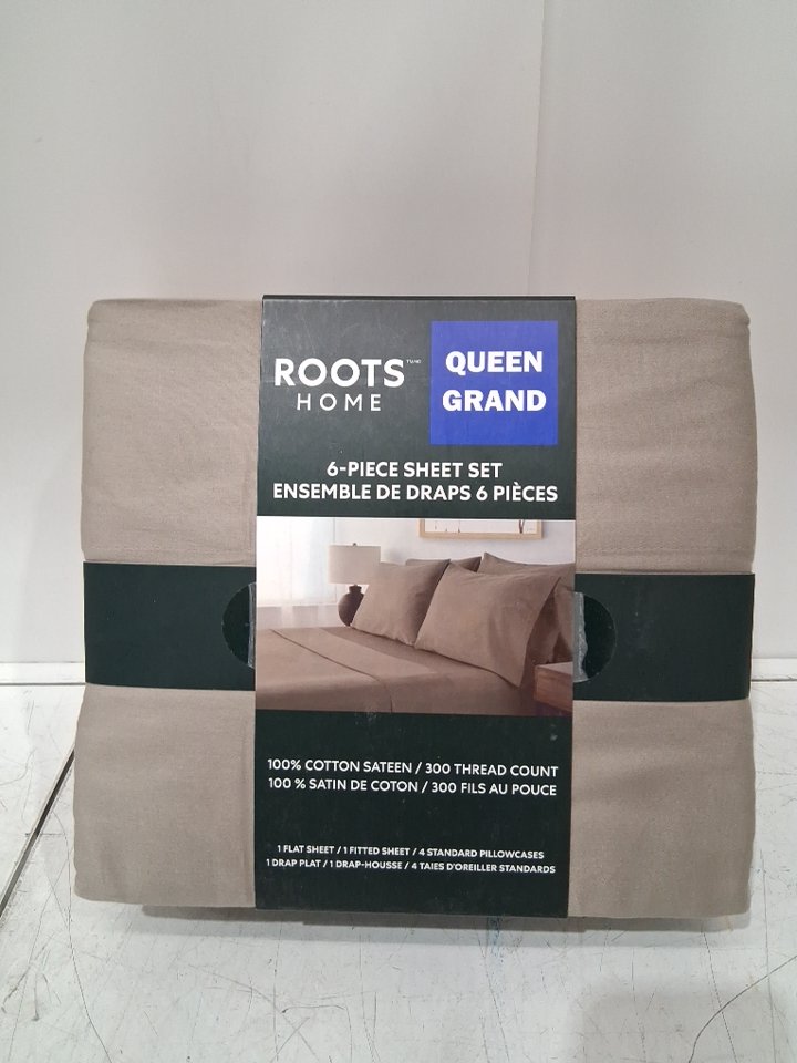 6pc Roots Home Cotton Sateen sheet set - queen - brown - (MODEL: 2891902)