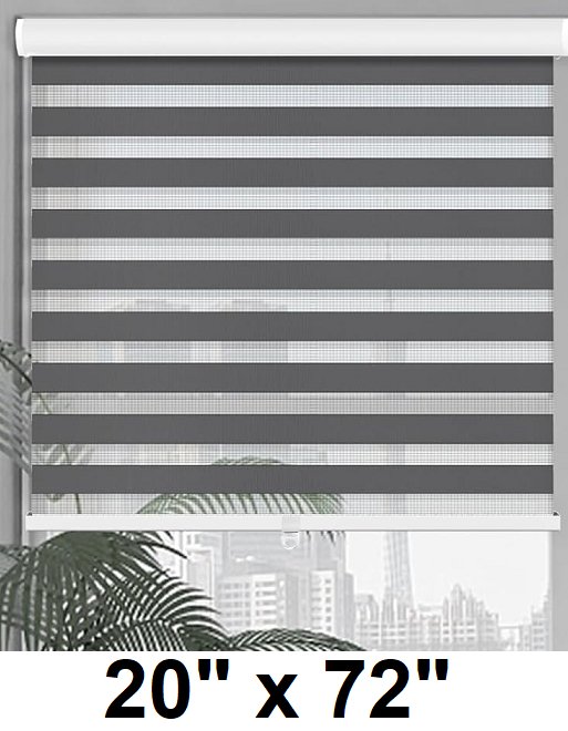 KOKORONA CORDLESS ZEBRA BLINDS - 20" X 72" - DARK GREY