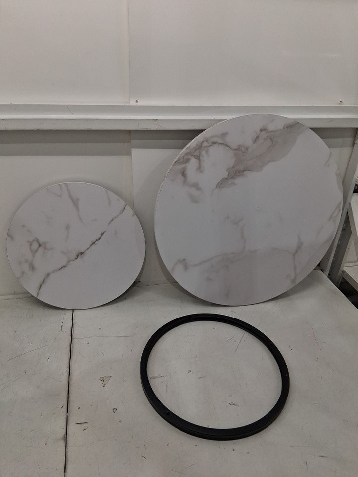 Small distress mark on larger tabletop likely caused by packaging. (See photos)