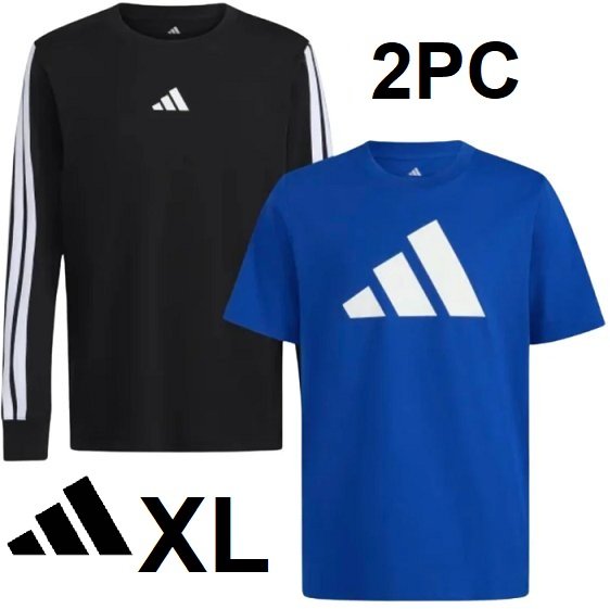 2PC BOY'S ADIDAS LONG SLEEVE AND SHORT SLEEVE T-SHIRT COMBO - extra LARGE - BLACK/BLUE/WHITE (style: 2269000)
