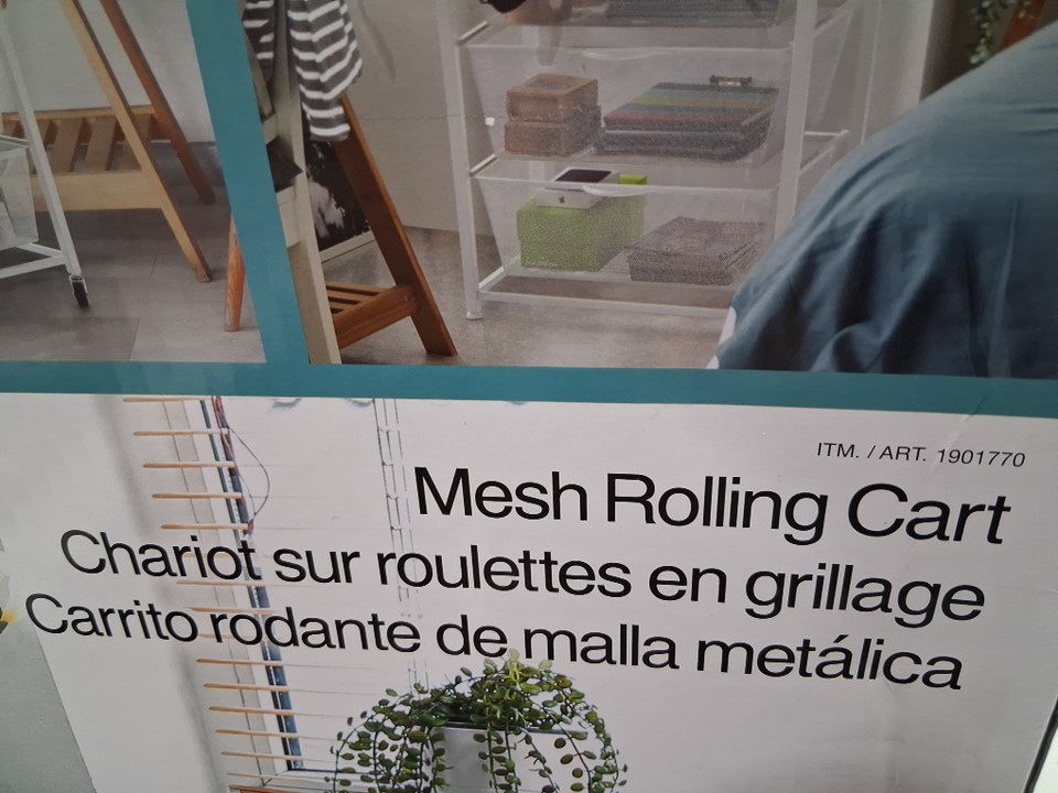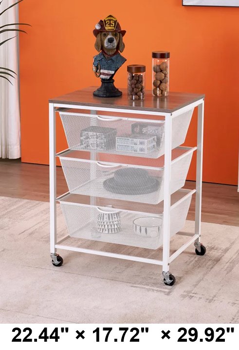 Edifice Mesh Rolling Cart with 3 Baskets - 22.44" × 17.72" × 29.92" - White - (Model: 1901770)