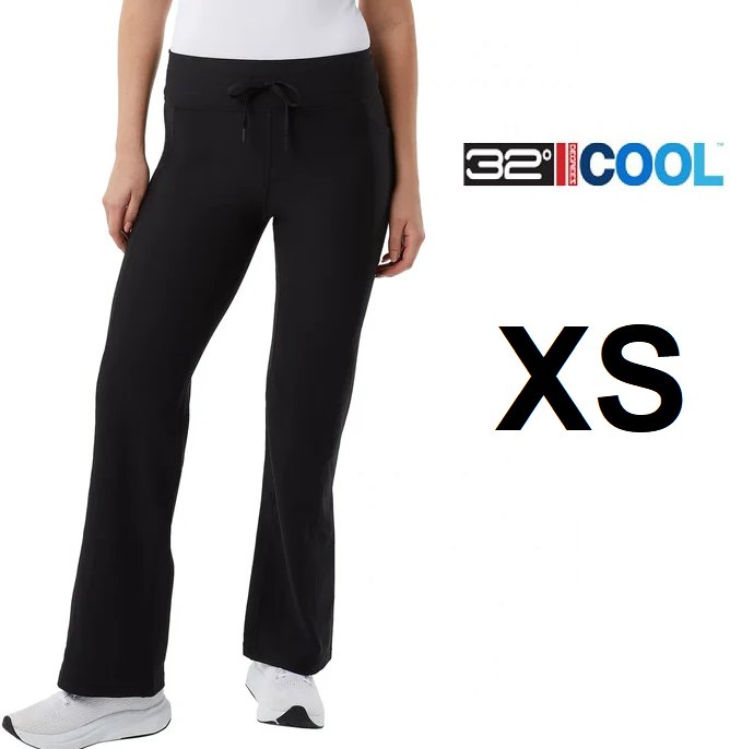Women's 32 Degrees Cool Drawstring Active Flare Ribbed Pants - EXTRA SMALL - BLACK (Style: 3171000)