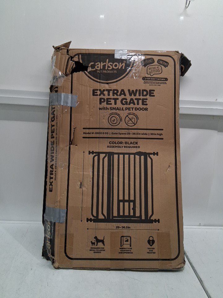 Carlson Extra Wide Dog Gate with Small Pet Door - 29.5–36.5” - BLACK ( MODEL:0930 B DS )