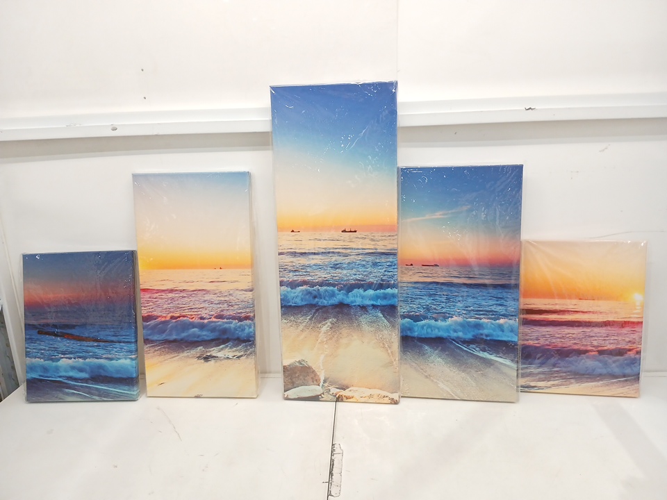 5PC Pyradecor Modern Seascape Ocean Sea Beach Waves Artwork on Canvas -