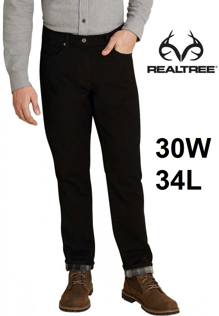 Men's Realtree Quilted Flannel Lined Jeans - 34W x 30L - black (Style: 1979202)