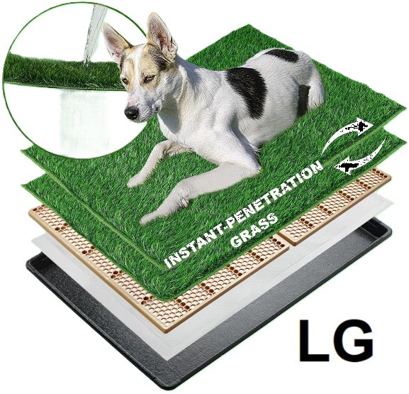 MEEXPAWS DOG ARTIFICIAL GRASS TRAINING TOILET WITH TRAY, DRAIN TRAYS & 2-PEE PADS - LARGE - BLACK/GREEN