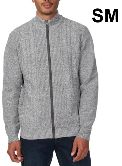 men's buffalo david bitton full zip cable knit sweater - small - light grey (STYLE: 1903425)